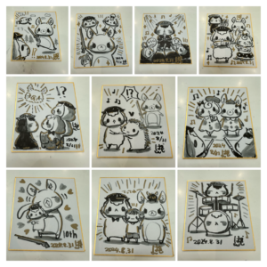 はしあさこさんのキャラクターを事前にリクエストいただき、仕上がったイラストにはしさんがサインと日付を入れて渡してくれるイベントです。