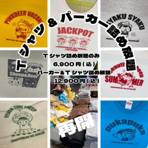 ※ Tシャツ詰め放題のみ 6,900円(込)パーカー&Tシャツ詰め放題 12,900円(込)